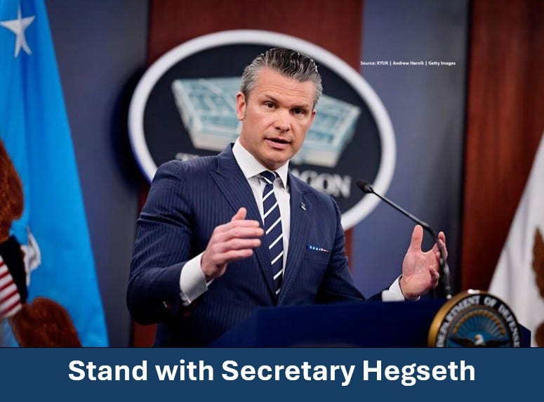 Don’t let the media’s smoke screen blind you. These progressive publications have embraced this “anonymous source” tactic for years against Trump and his allies. Demand confirmation or retraction from these media outlets. Stand up for our Secretary of War. Contact your members of Congress and tell them to support Secretary Hegseth in his mission to protect and defend our nation. And remember: the true war isn’t in some anonymous whisper—it’s on our streets, where illicit drugs claim a life every five minutes. For the fallen, for the families shattered, and for the America we refuse to lose—stand firm.